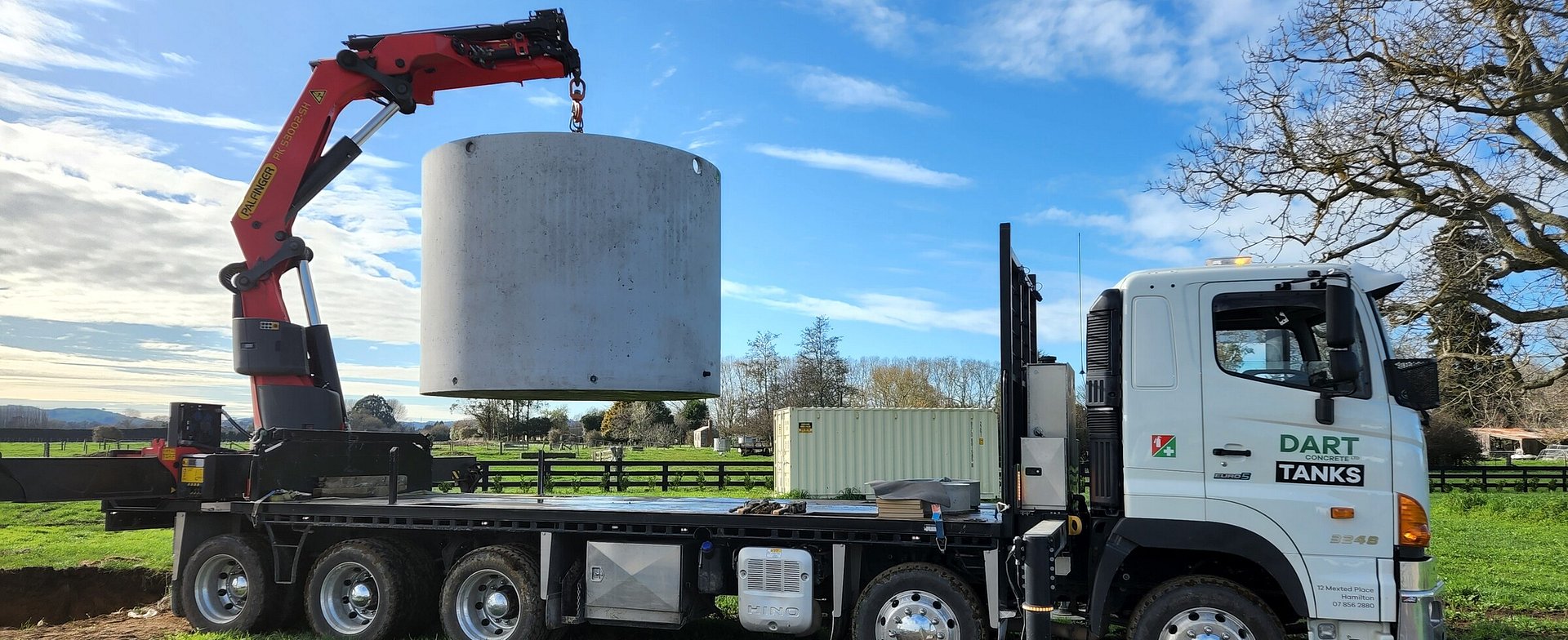 At Dart Concrete, we manufacture and supply high-quality precast concrete products for residential, rural, and commercial use. Based in Hamilton, we proudly deliver to customers throughout the Waikato, Auckland, Bay of Plenty, and the central North Island.